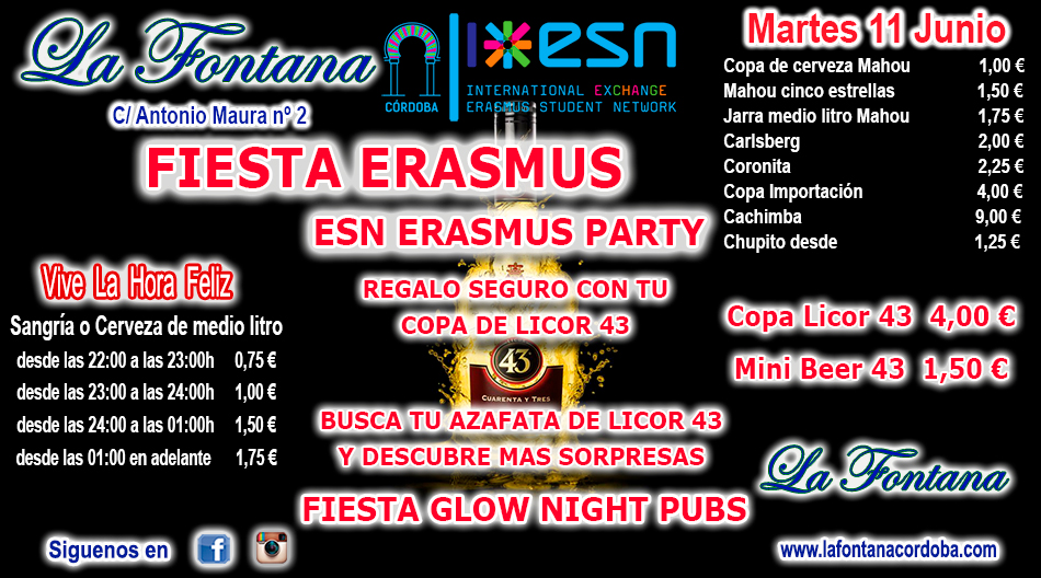 Martes 11 de Junio…¡FIESTA ERASMUS!
