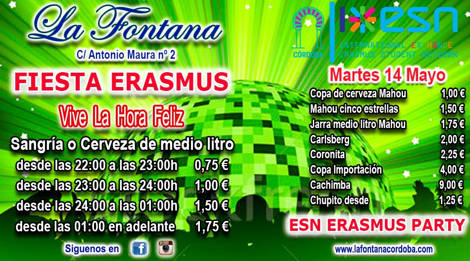Martes 14 de Mayo…¡FIESTA ERASMUS!